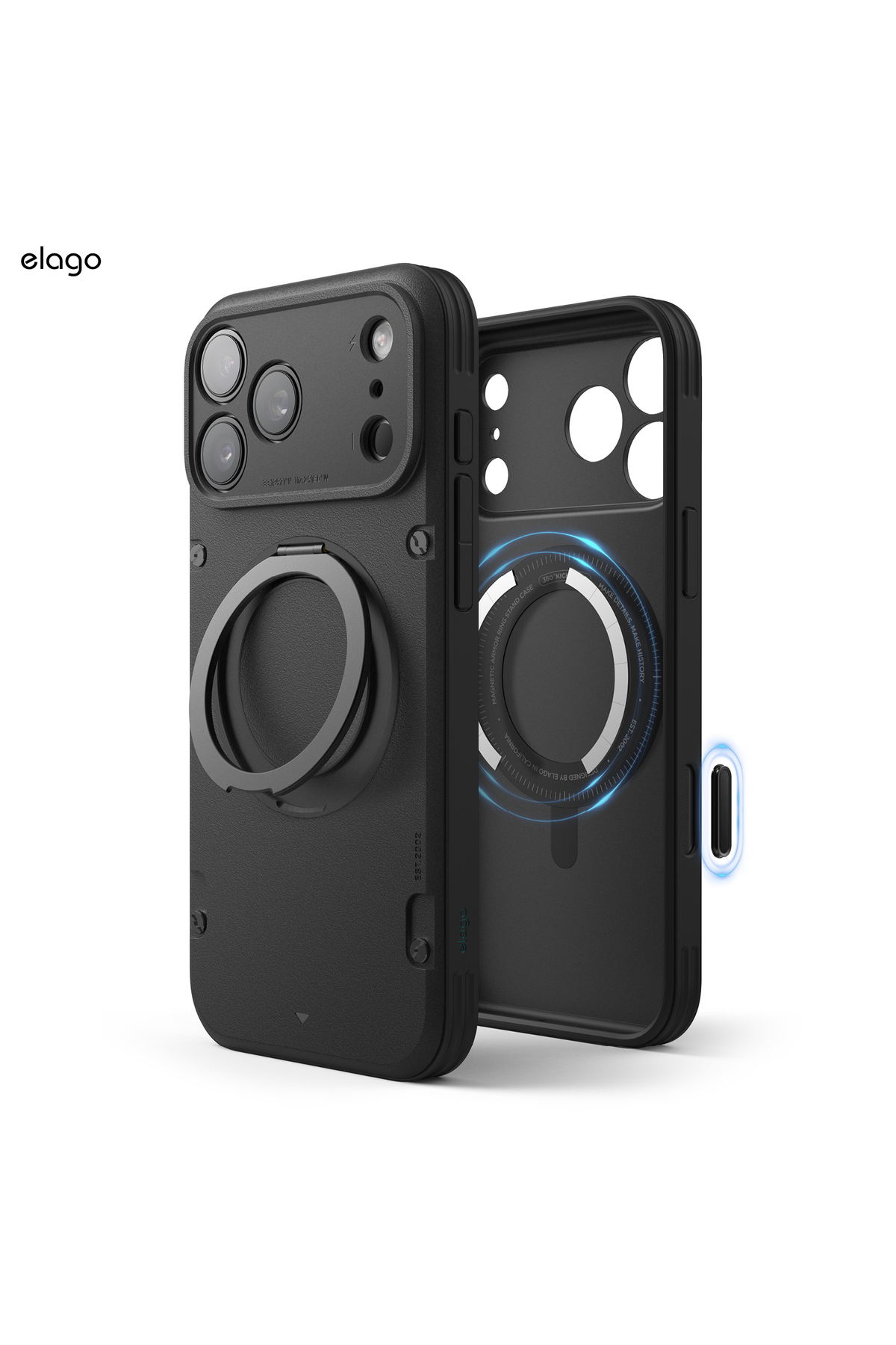 Elago iPhone 17 Pro Max Manyetik Armor Kılıf – 6.9 İnç, Zırh Tasarım, Tam Koruma Siyah